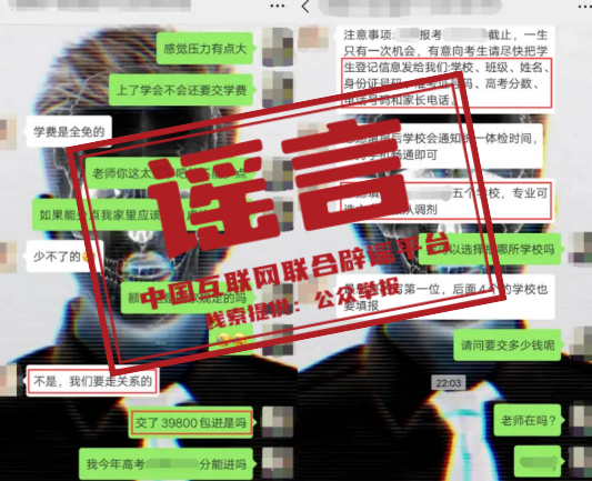 中国互联网联合辟谣平台提醒广大考生和家长一定要妥善保管好考生个人信息,提高防范意识,守好“钱袋子”,不给诈骗分子留有可乘之机。不造谣、不信谣、不传谣,共同维护高招工作的公平公正。最后,祝愿广大莘莘学子不负韶华,金榜题名!(中国互联网联合辟谣平台 芮静 综合中国军网、公安部网安局、“微言教育”微信公众号等报道)