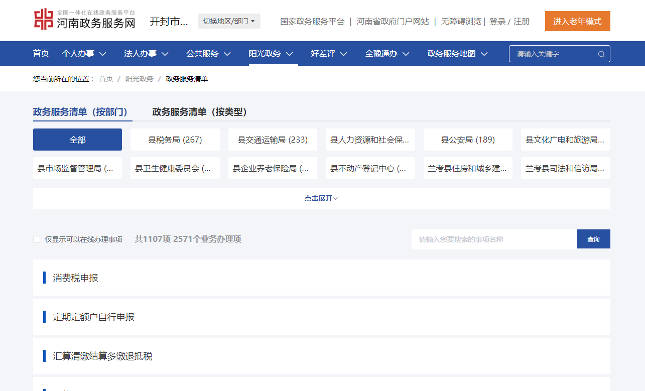 进入河南政务服务网开封市兰考县,即可查询到开封市兰考县政务服务事项清单。