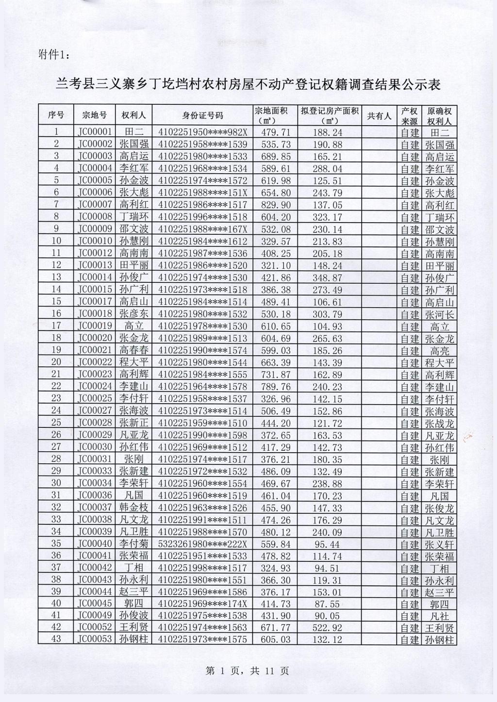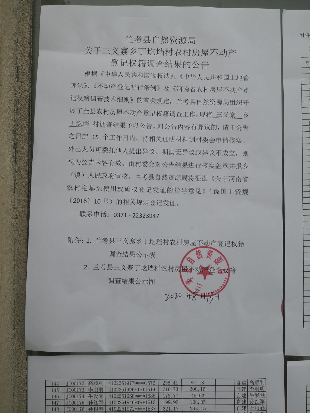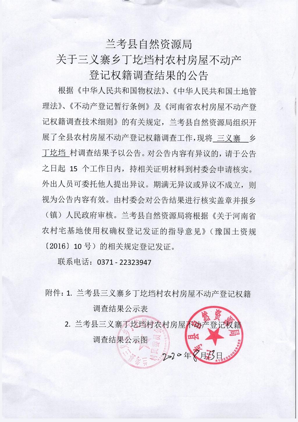 兰考县农村房屋不动产登记关于三义寨乡丁圪垱村权籍调查结果的公示公告