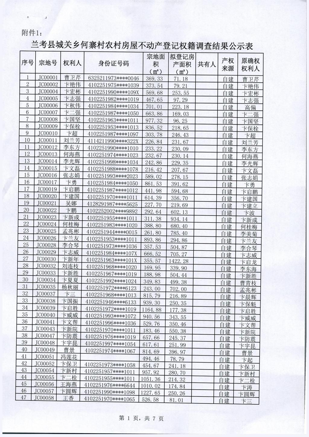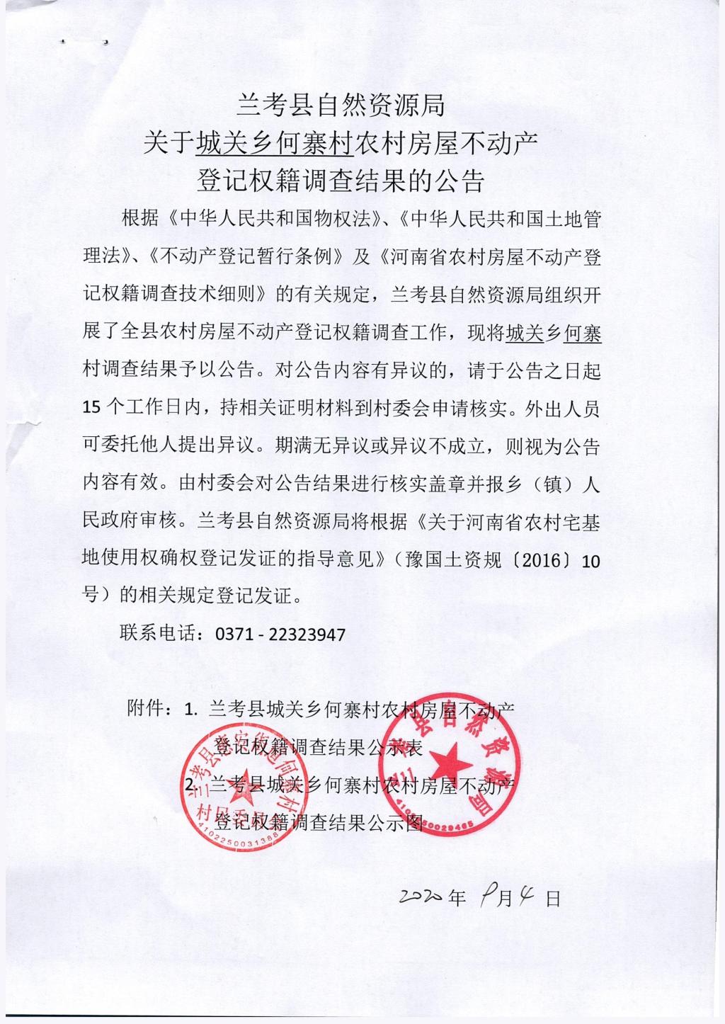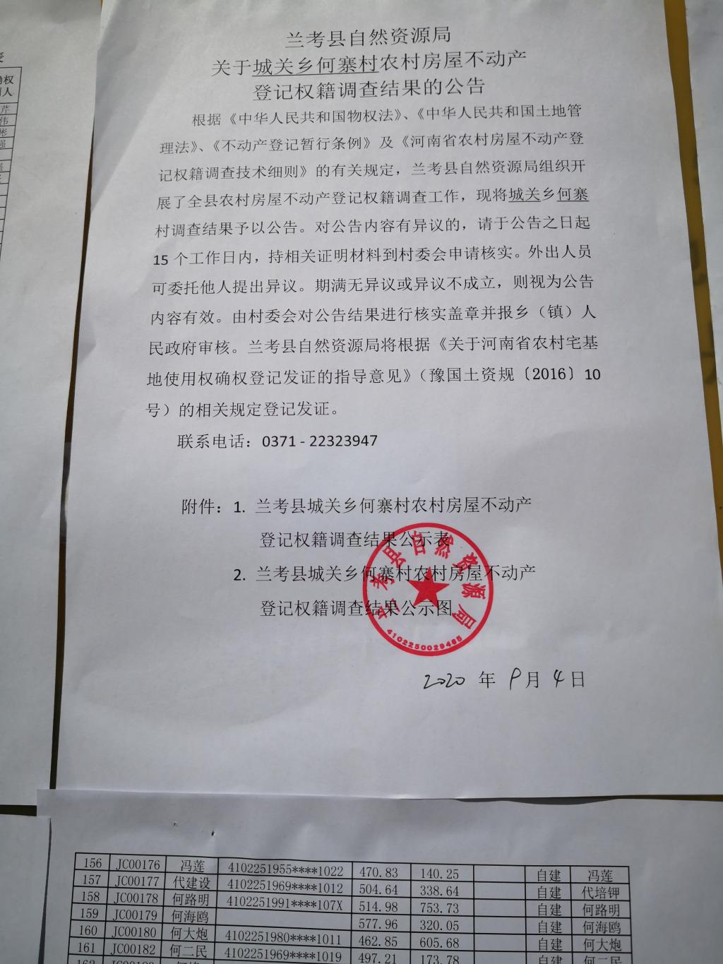 兰考县农村房屋不动产登记关于桐乡何寨村权籍调查结果的公示公告