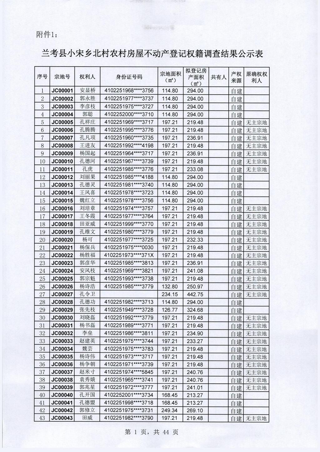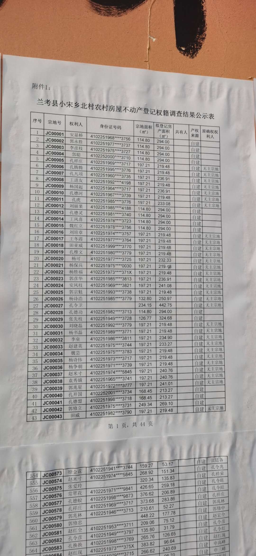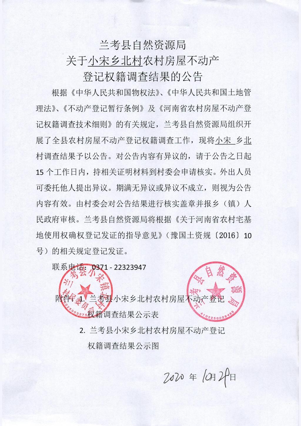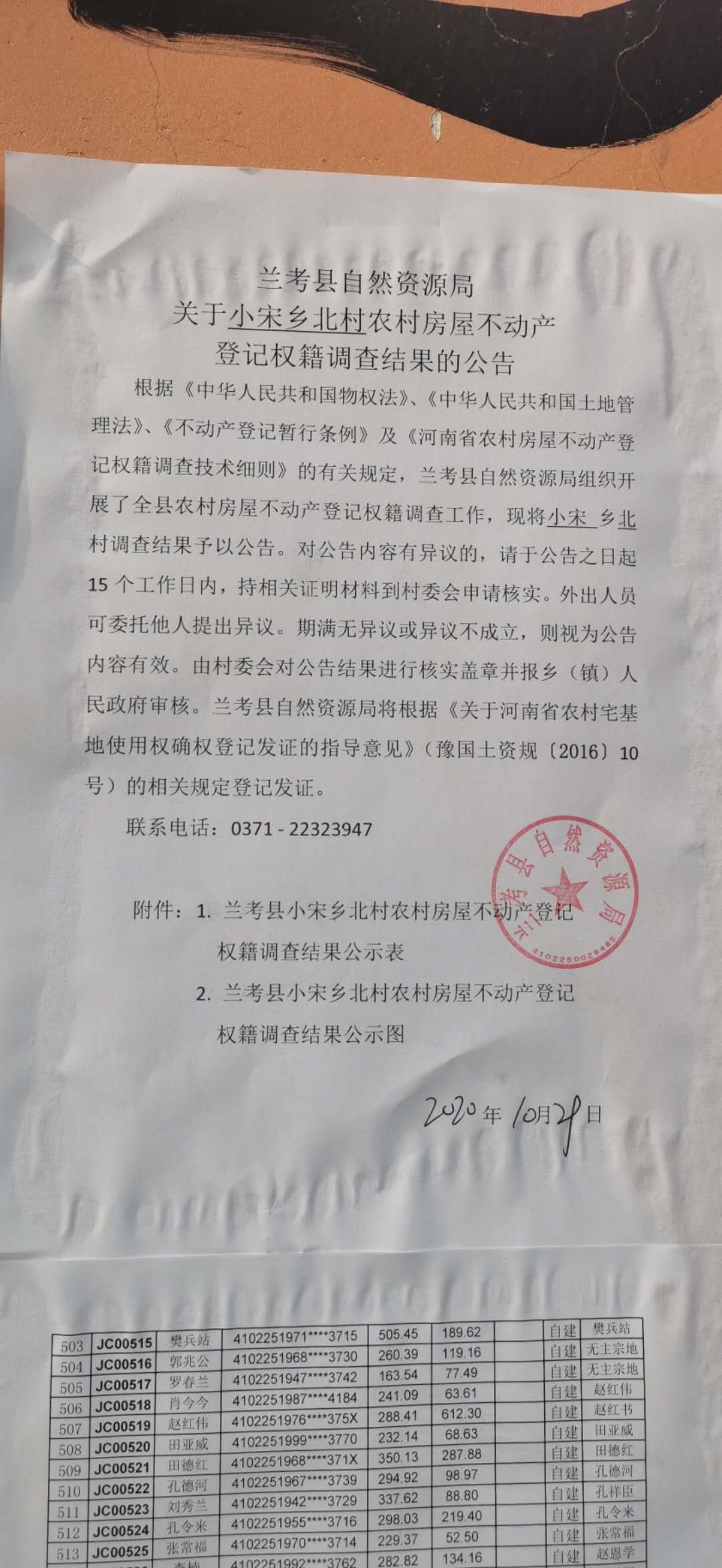 兰考县农村房屋不动产登记关于小宋乡北村权籍调查结果的公示公告