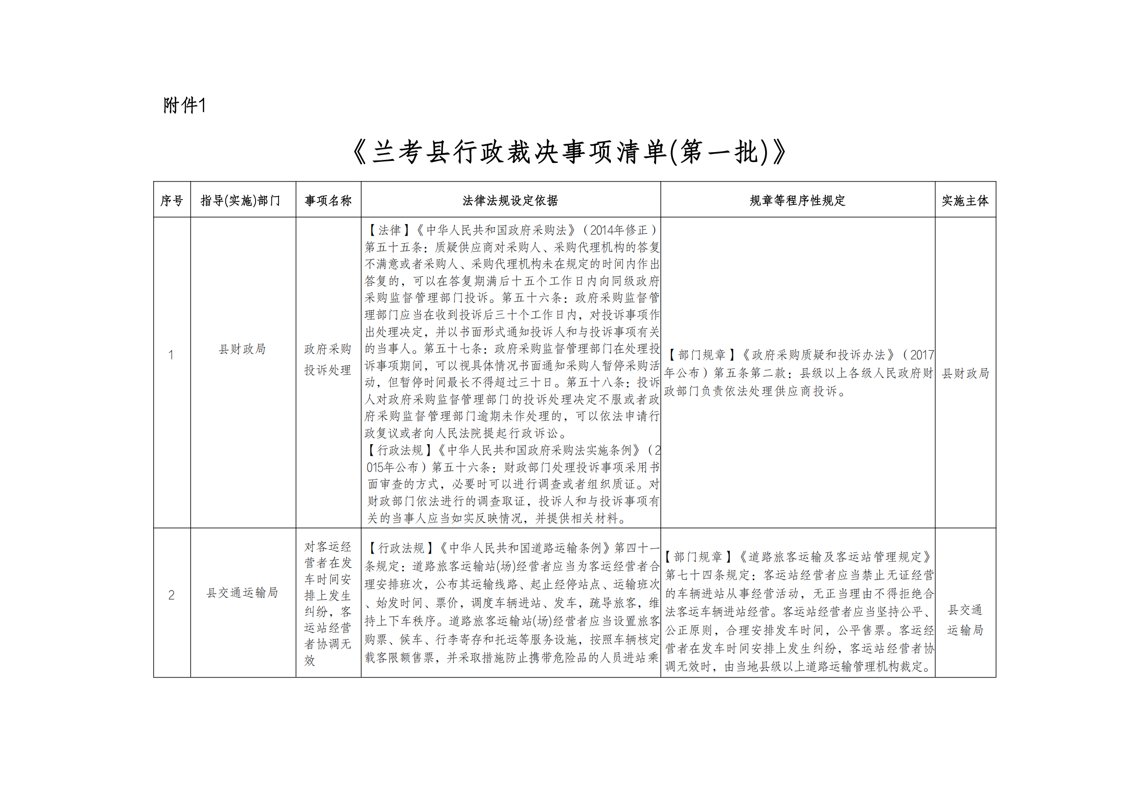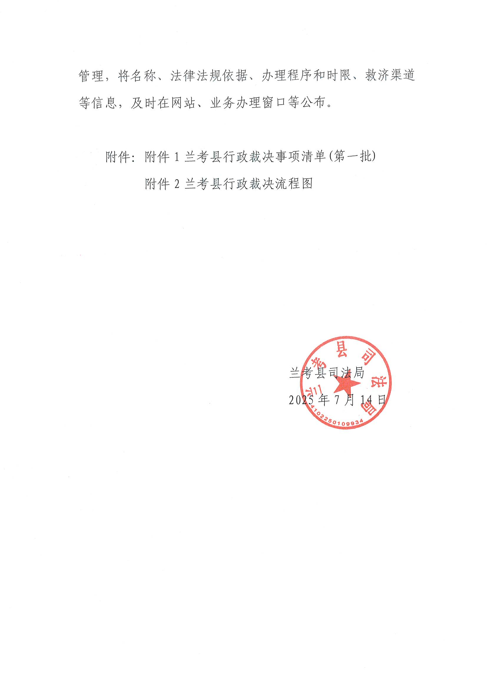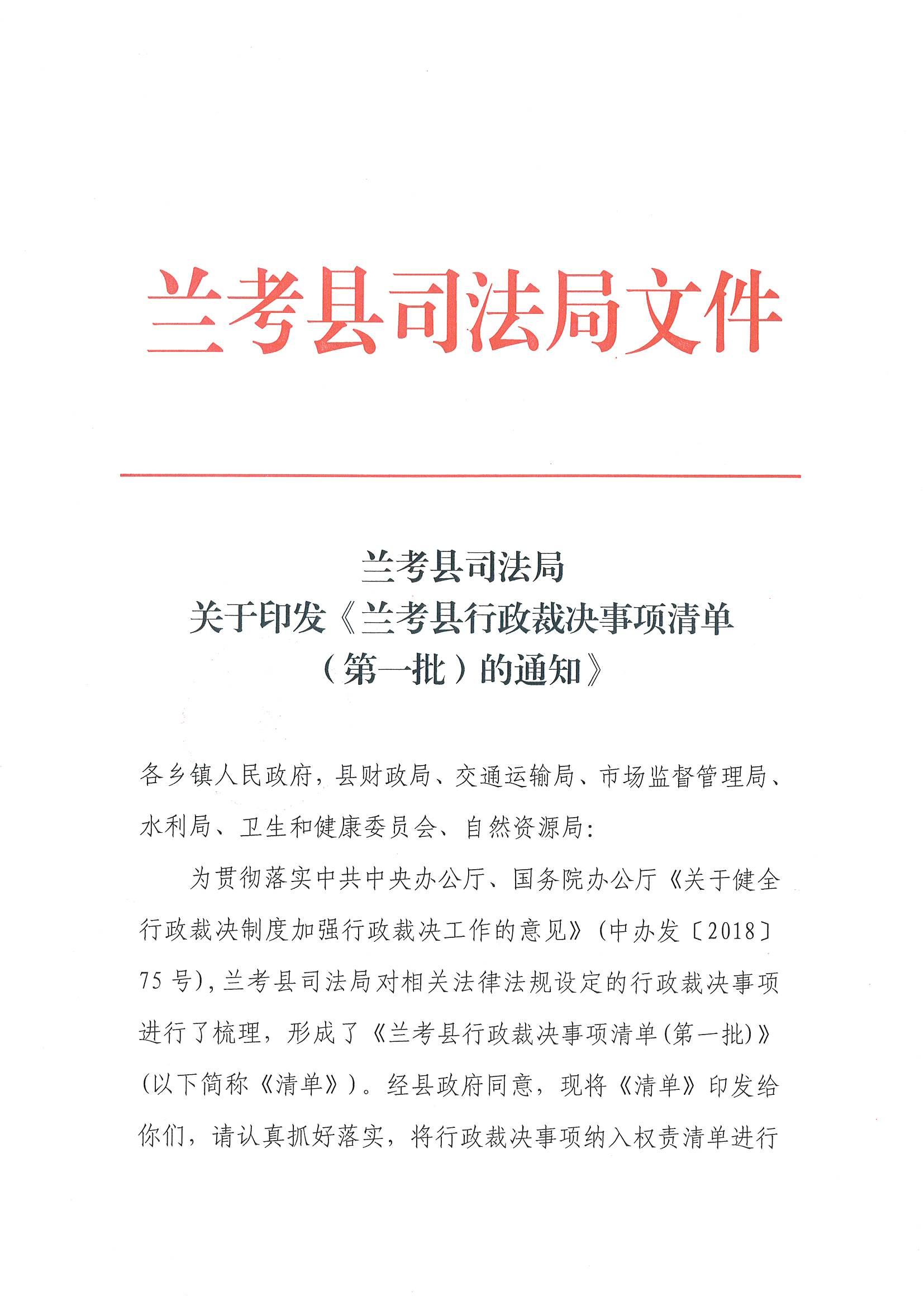 兰考县司法局关于印发《兰考县行政裁决事项清单(第一批)的通知》