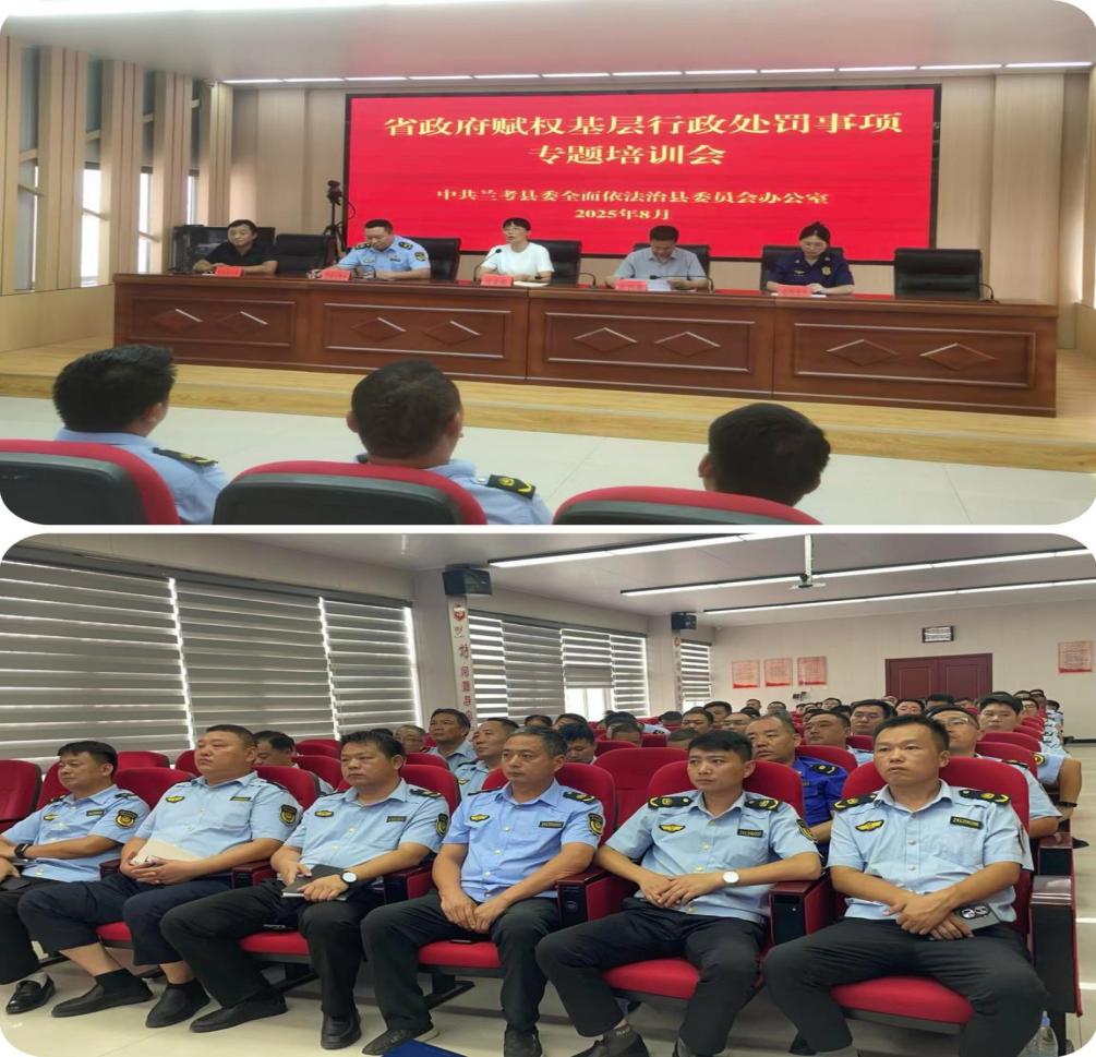 为确保 省政府赋权基层34项行政处罚权 “接得住、 管得好、有监督 ”,8月12日,兰考县依法治县办组织召开省政府赋权基层行政执法事项 专题培训 会。16个乡镇(街道) 综合执法大队长、执法 骨干 近100人参加培训。